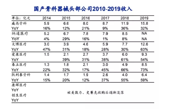 在骨科器械這一細(xì)分市場,國產(chǎn)器械則已經(jīng)長期霸占市場。數(shù)據(jù)顯示,自2014年以來,頭部國產(chǎn)骨科公司有威高、納通、大博、愛康、凱利泰、春立,到2019年頭部骨科器械公司基本仍在頭部。其中,春立醫(yī)療(港股)股價(jià)更是實(shí)現(xiàn)了2年10倍幅。2019年,春立醫(yī)療收入為8.55億元,營業(yè)收入同比增長71.78%。春立醫(yī)療專注于骨科植入物市場,特別是關(guān)節(jié)類產(chǎn)品。